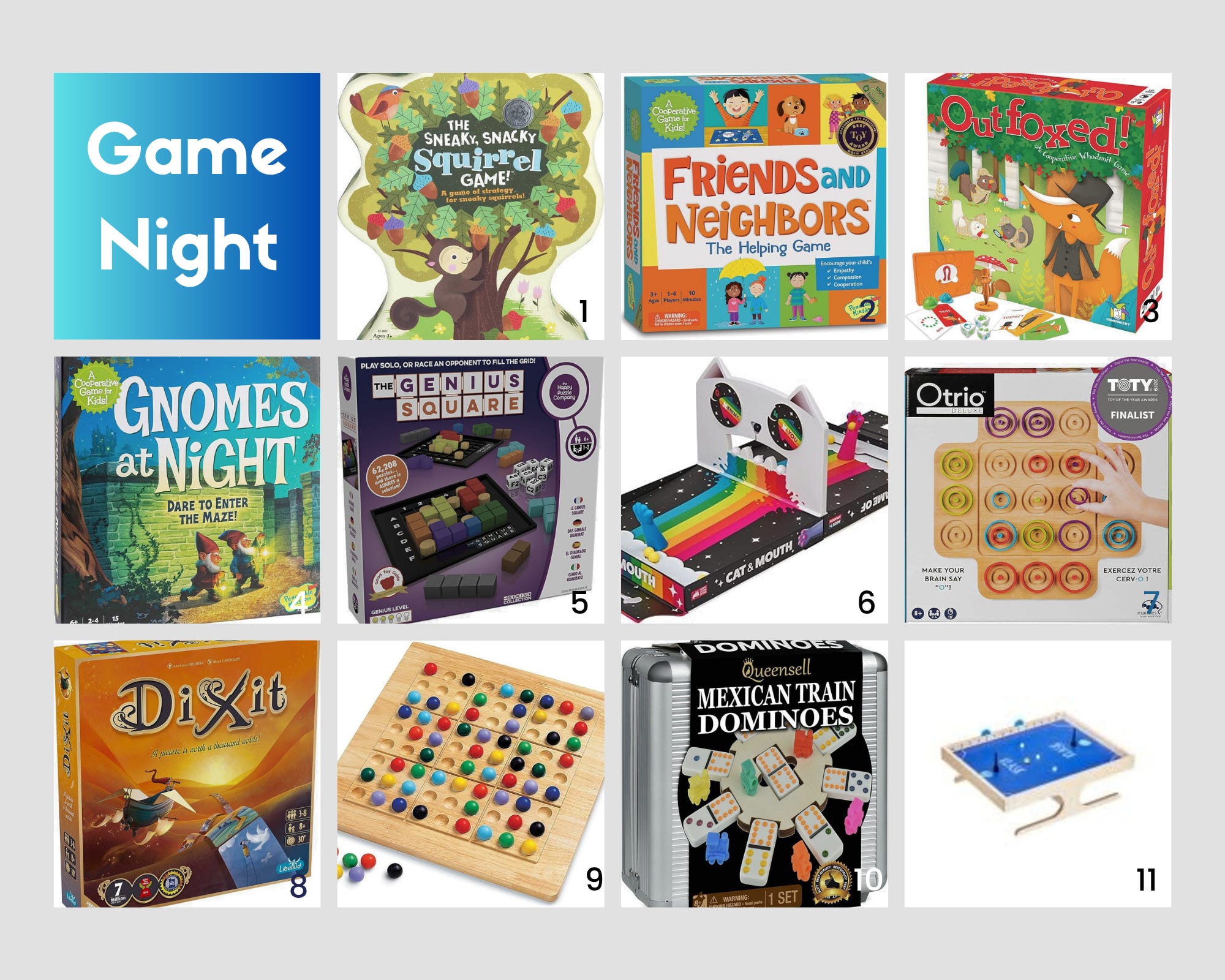 Gnomes at Night: Another cooperative game where you work with a partner to navigate a maze using magnetic pieces.